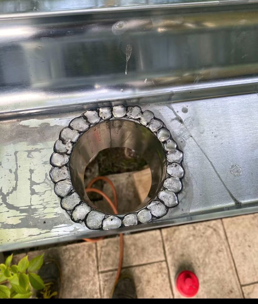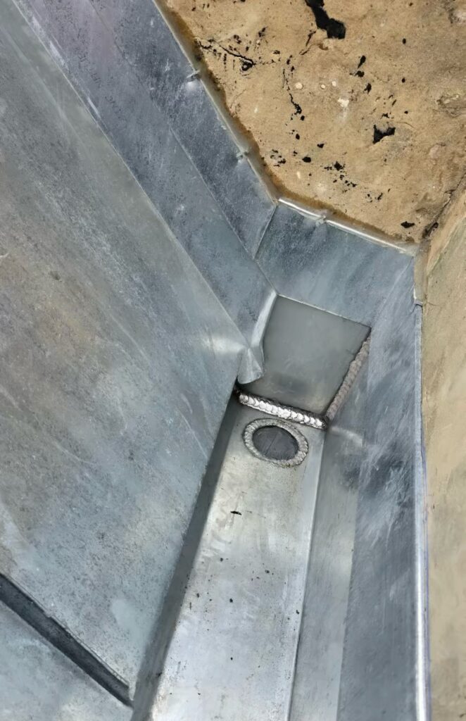 Traitement des points sensibles, réparation des fixations et application de protections anticorrosion pour garantir l’étanchéité et prolonger la durée de vie du bac acier.