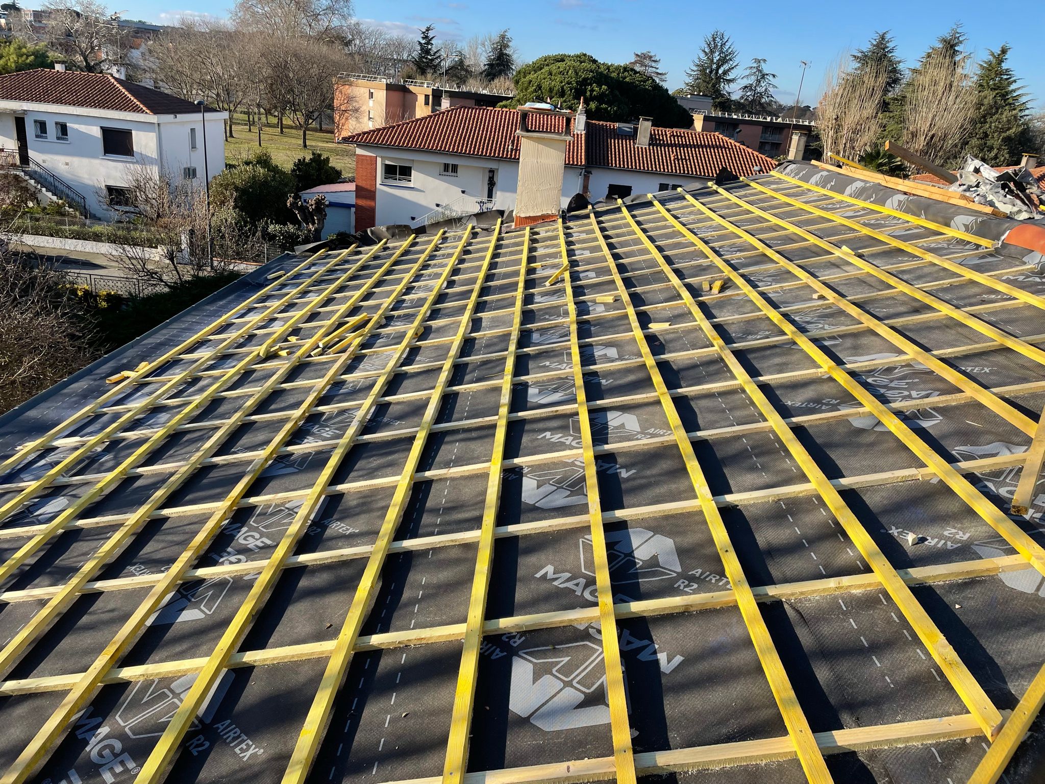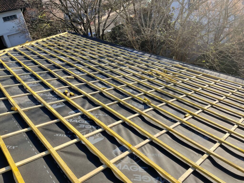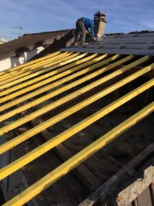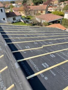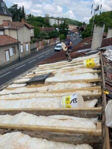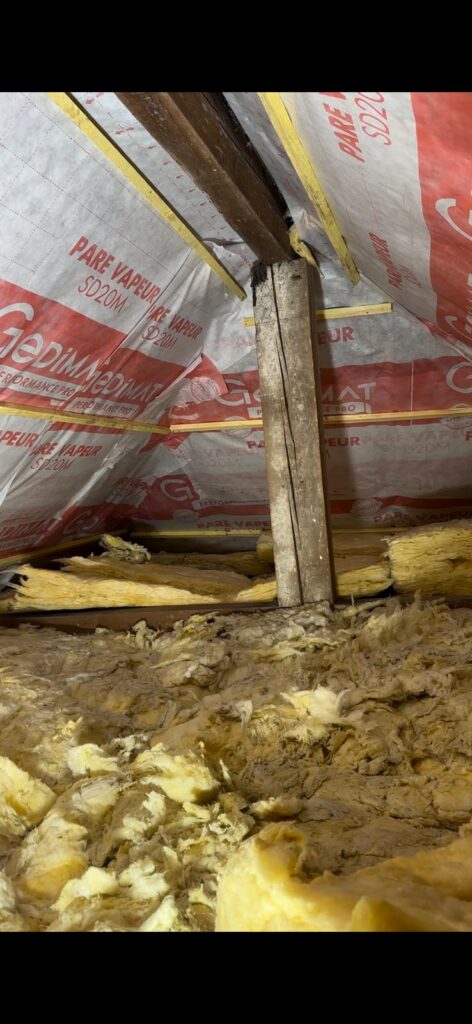Nous assurons l’isolation du toit et des combles, par la pose d’isolants performants (laine minérale, panneaux rigides ou isolant mince réfléchissant) directement sous la couverture. Cette mise en œuvre garantit une continuité de l’isolation, limite les ponts thermiques, améliore l’étanchéité à l’air et optimise la performance énergétique globale du bâtiment, conformément aux normes en vigueur.