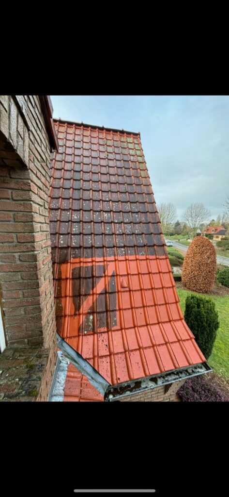 Nous réalisons le nettoyage et le démoussage de toiture, incluant l’élimination des mousses, lichens et salissures par des méthodes adaptées au type de couverture (tuile, ardoise, bac acier). L’intervention est complétée par l’application d’un traitement anti-mousse et, si nécessaire, d’un hydrofuge afin de préserver l’étanchéité, limiter la porosité des matériaux et prolonger la durée de vie de la toiture.