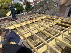 Nous prenons en charge les travaux d’extension de maison, depuis la création de la structure jusqu’à la réalisation de la toiture. Nous adaptons la couverture à l’existant (pente, matériaux, étanchéité) afin d’assurer une continuité parfaite, une protection durable contre les intempéries et un rendu esthétique harmonieux, conforme aux normes en vigueur.