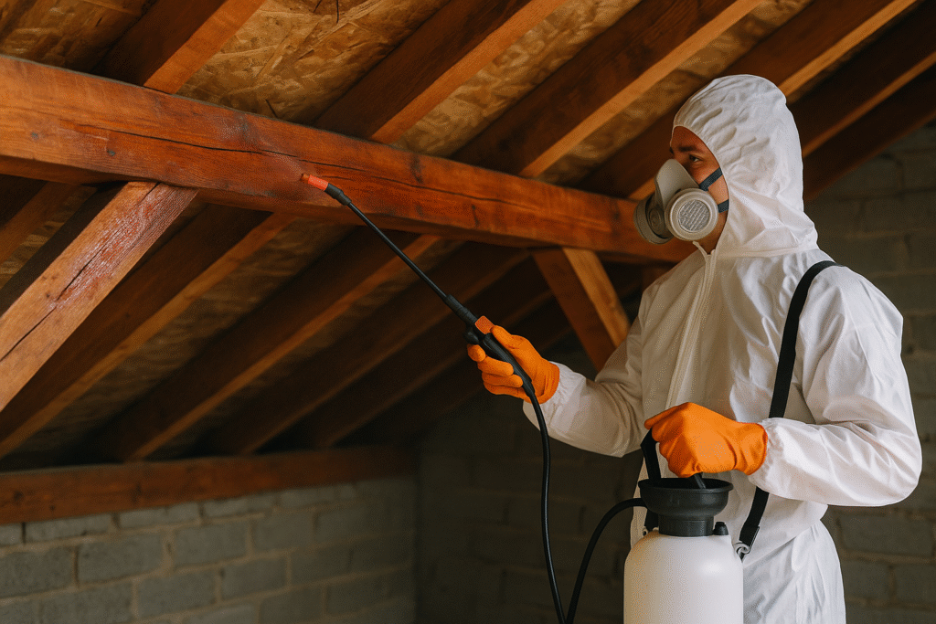 Protégez votre charpente contre les insectes xylophages (comme les termites ou capricornes), l’humidité et les champignons lignivores. Nous réalisons des traitements de charpente préventifs et curatifs, avec des produits professionnels respectueux de l’environnement. Un entretien indispensable pour prolonger la durée de vie de votre charpente bois et éviter les réparations coûteuses.