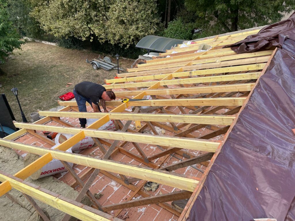 Votre charpente montre des signes d’usure ou de faiblesse ? Faites appel à un professionnel de la rénovation de charpente pour assurer la sécurité de votre toiture. Nous intervenons sur tout type de charpente traditionnelle en bois, avec des techniques adaptées pour le remplacement de poutres, le renforcement de la structure ou le traitement du bois. Grâce à notre expertise, vous retrouvez une charpente saine, fiable et conforme aux normes en vigueur.